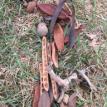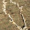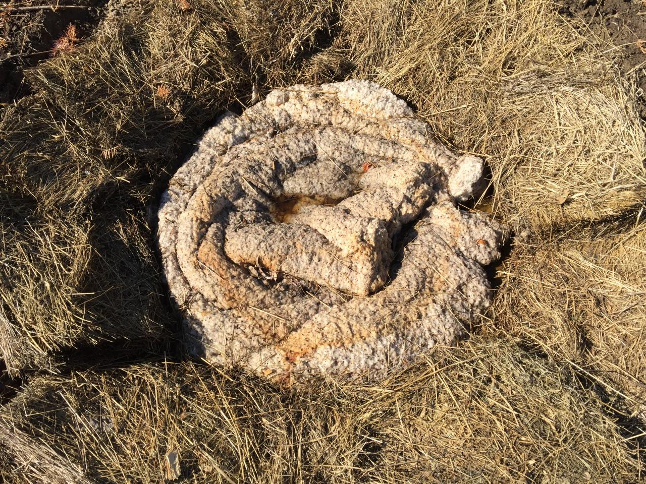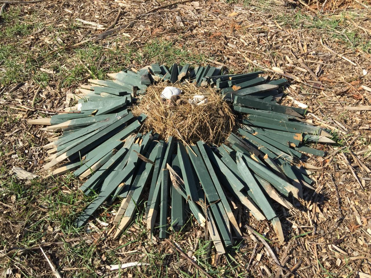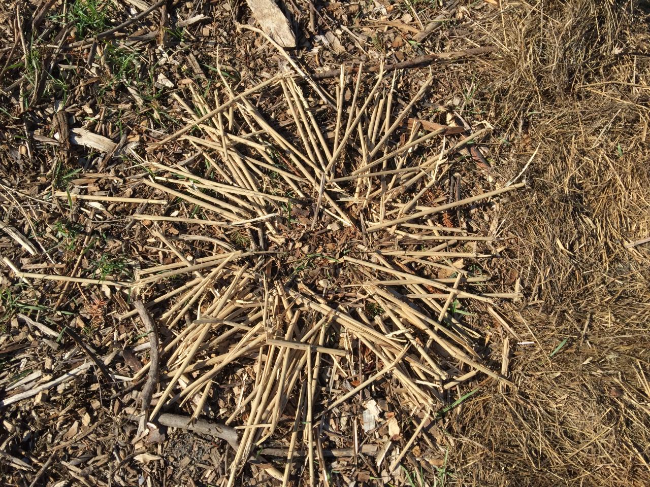 I created ephemeral circles of straw, detritus and other materials found onsite. I outlined my body in deer bone and other natural objects after Anna Mendietta's Silhouettas. I lined a fire pit created by one of the previous artists with cotton batting from an old futon, encircled it with bones, and burrowed in, returning myself to the earth as if a burial ground.