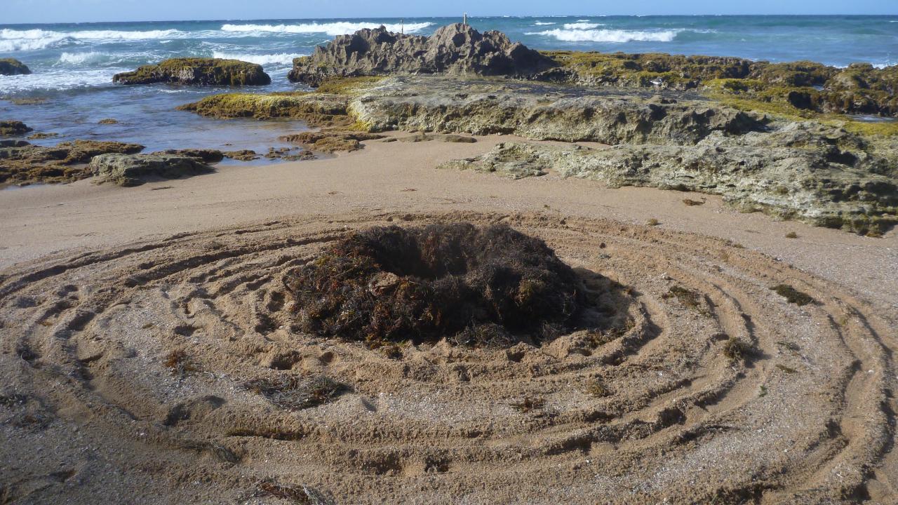A self-created residency in San Juan, Puerto Rico, March 2015. I daily created and documented works on the beach, working with materials found and collected there, in conversation with the tides.